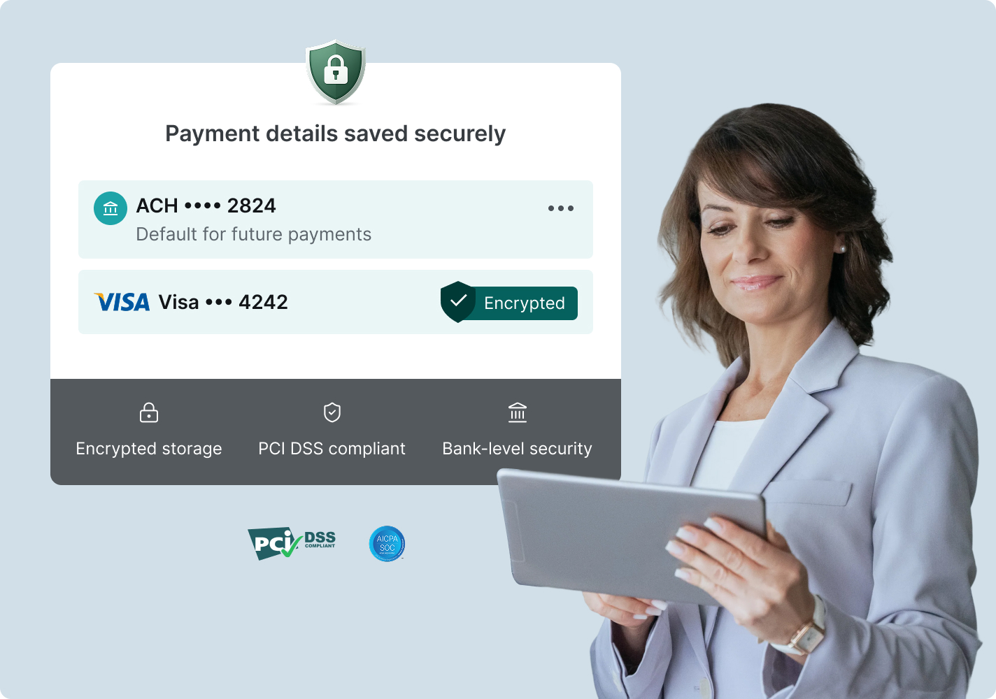 Bank and card details are stored with PCI-compliant tokenization, making recurring payments seamless and safe.