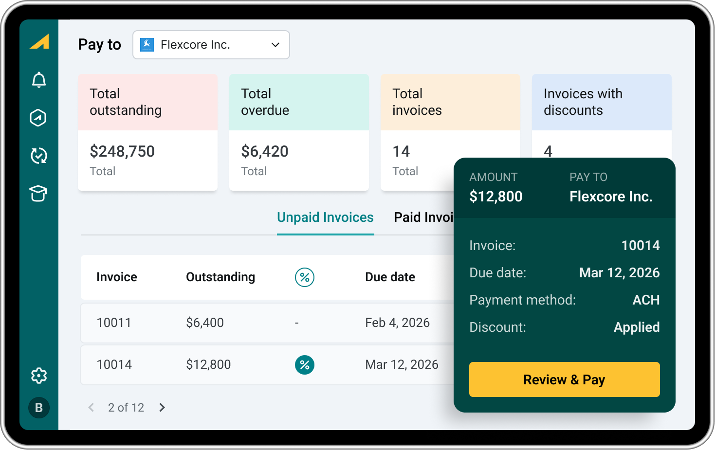 Customers opt into automated payments on invoice date, due date, or last discount day—ending late payments and improving DSO.
