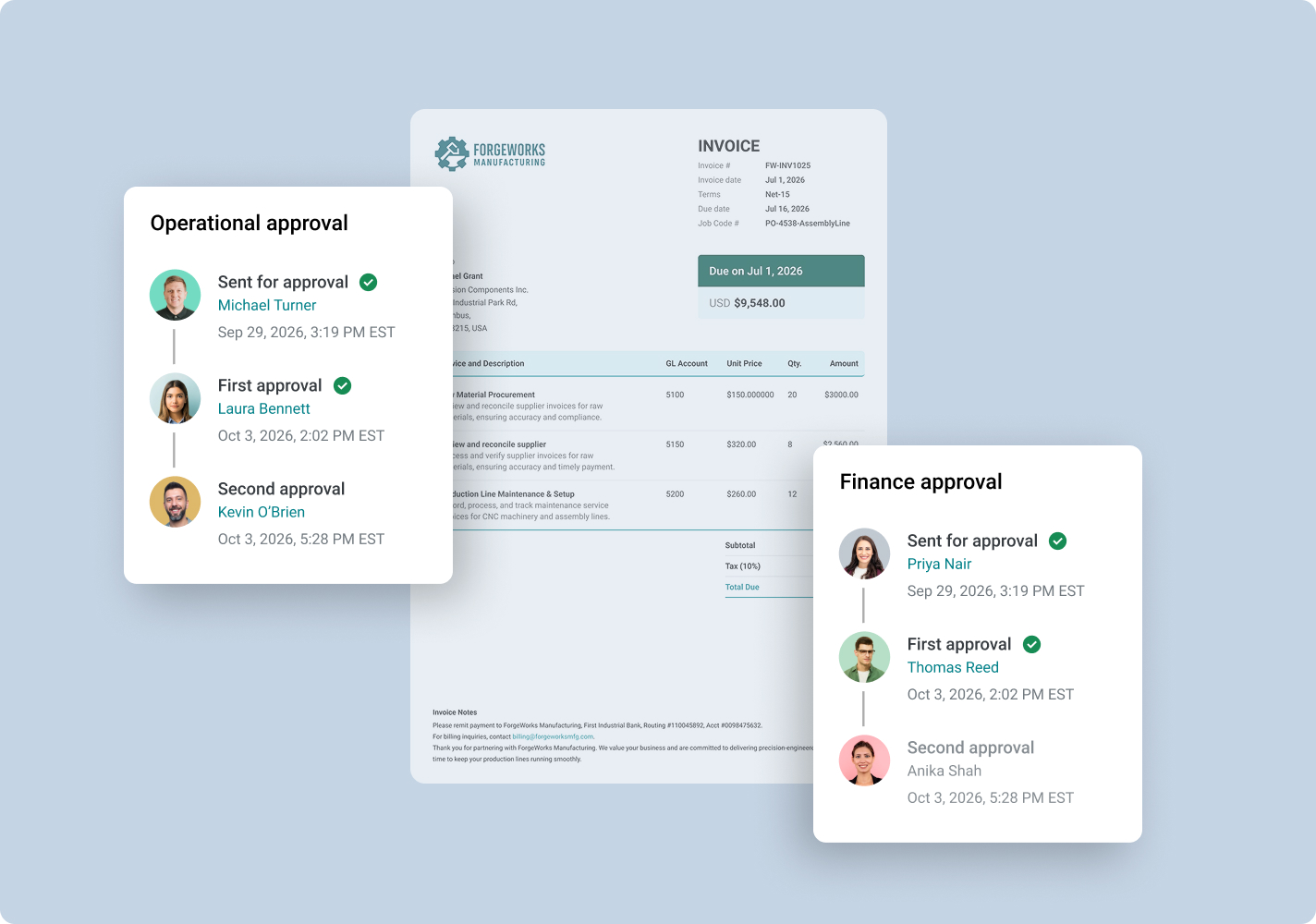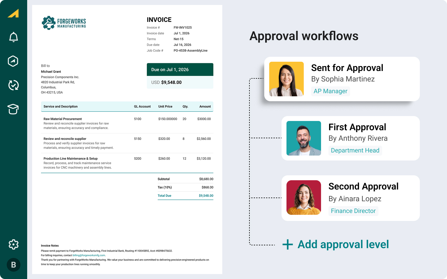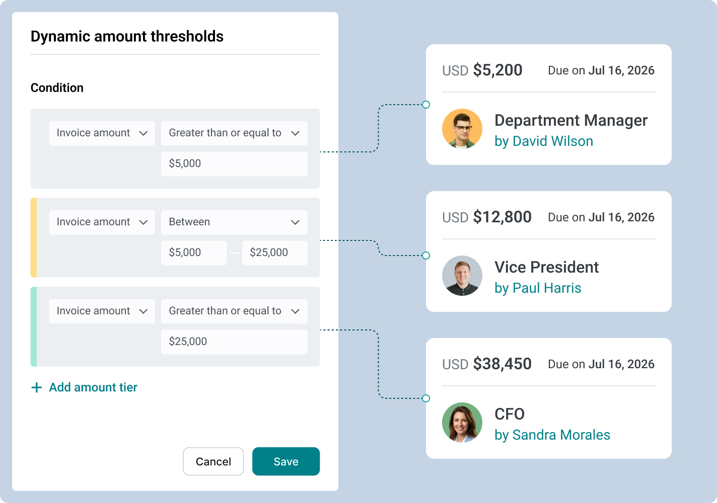 The system automatically applies the correct approval chain based on the invoice total, ensuring compliance without slowing down low-value transactions.