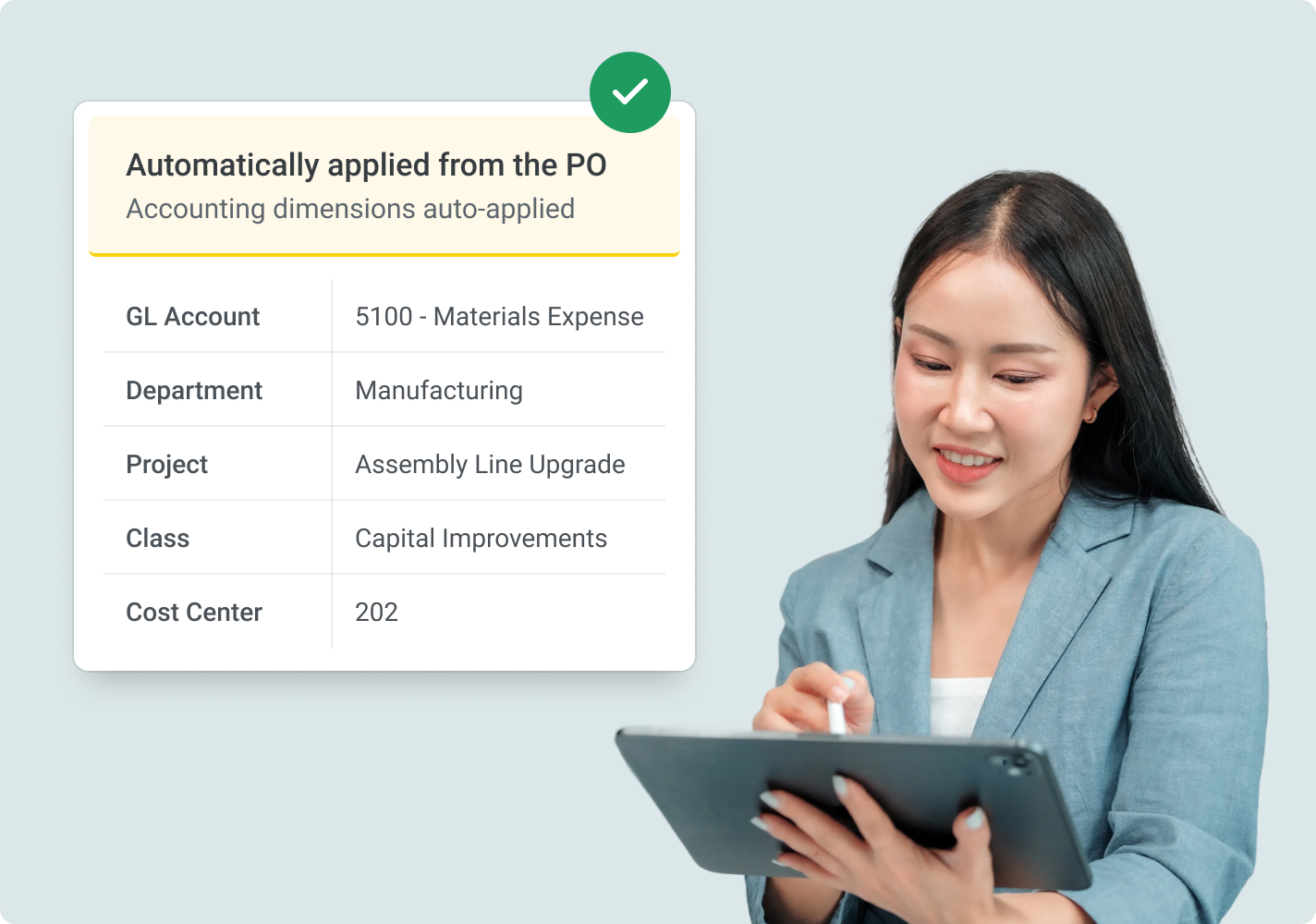 Once lines are linked, GL coding from the PO automatically populates the invoice—including custom fields—eliminating redundant data entry and reducing coding errors.