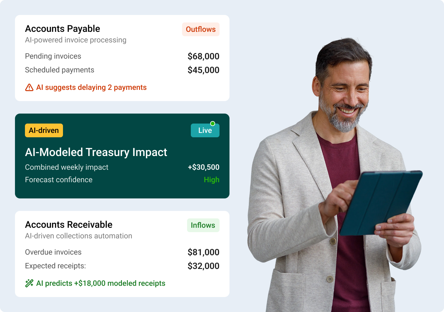 Automated 13-week rolling cash forecasts that update in real-time as AP, AR, and expenses flow through your system. Predict shortfalls weeks in advance, not hours.
